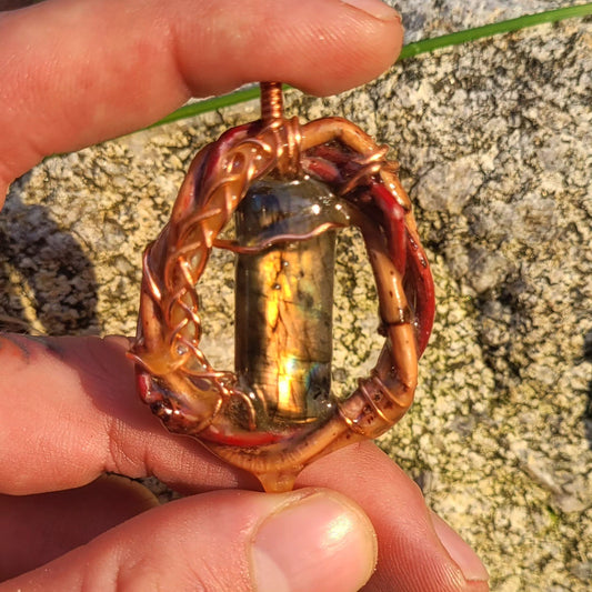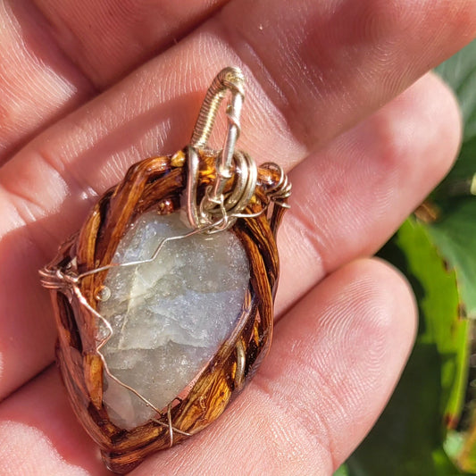 A Double Sided Glowing Labradorite Nested in Maple