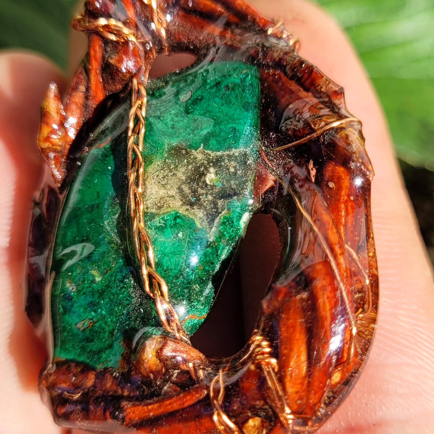 No two Spirit Nests will ever be alike, just like no two people are ever completely alike. Each nest has its own unique qualities from the trees and stones. Trees similar to our thoughts start as a small seed. Sending roots deep into our being and a massive canopy over us, either empowering or crippling us. Stones similar to our emotions, form under different pressures and conditions giving them their own unique beautiful and dangerous qualities. A Spiritnest being worn between the two acts as a sort of Talisman connecting them.