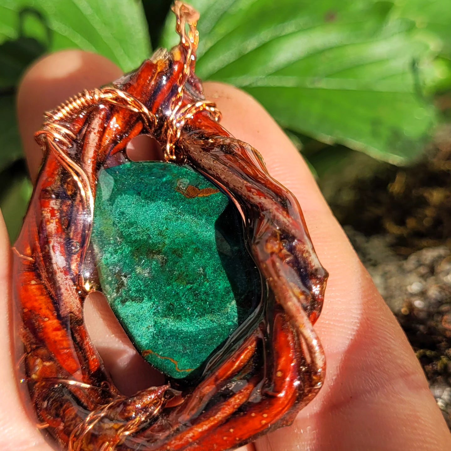Birch is so useful it is definitely a friend to humanity, from its healing properties to its ability to start fires birch really makes life easier. Birch is a hardwood with beautiful bark, it's fast growing so it is often among the new life after a forest fire. Birch empowers us igniting inner strength. Chrysocolla, with associations of tranquility, peace, intuition, patience and unconditional love, is known as a healing stone among Native American cultures where it has been used to strengthen the body's resistance to illness and emotional duress. Chrysocolla also connects the root, heart, and throat chakras making this a stone of vitality and one that can allow us to maximize our own physical and mental energies. The conductivity of the copper brings everything together, to be worn around your neck 💚🌱