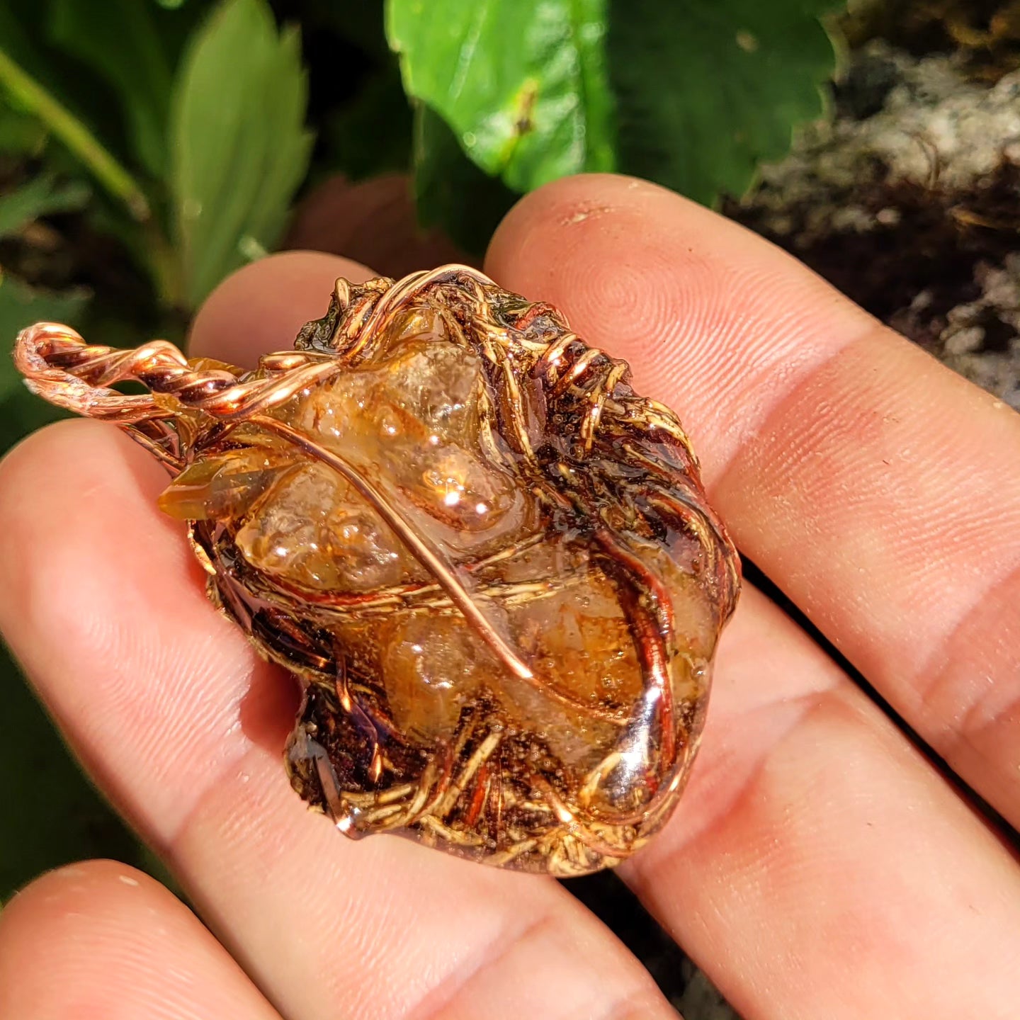 Adjustable cotton string included. A magical one of a kind spiritnest, Tangerine quartz nested in hemlock, spun copper for the hanger of the pendant.