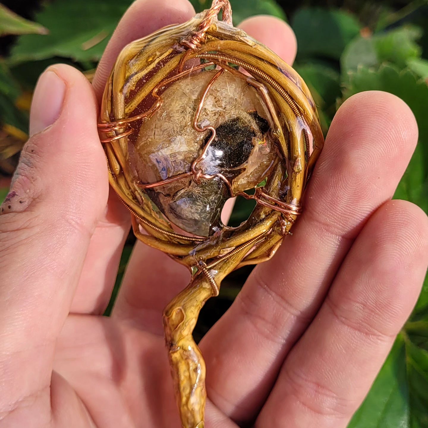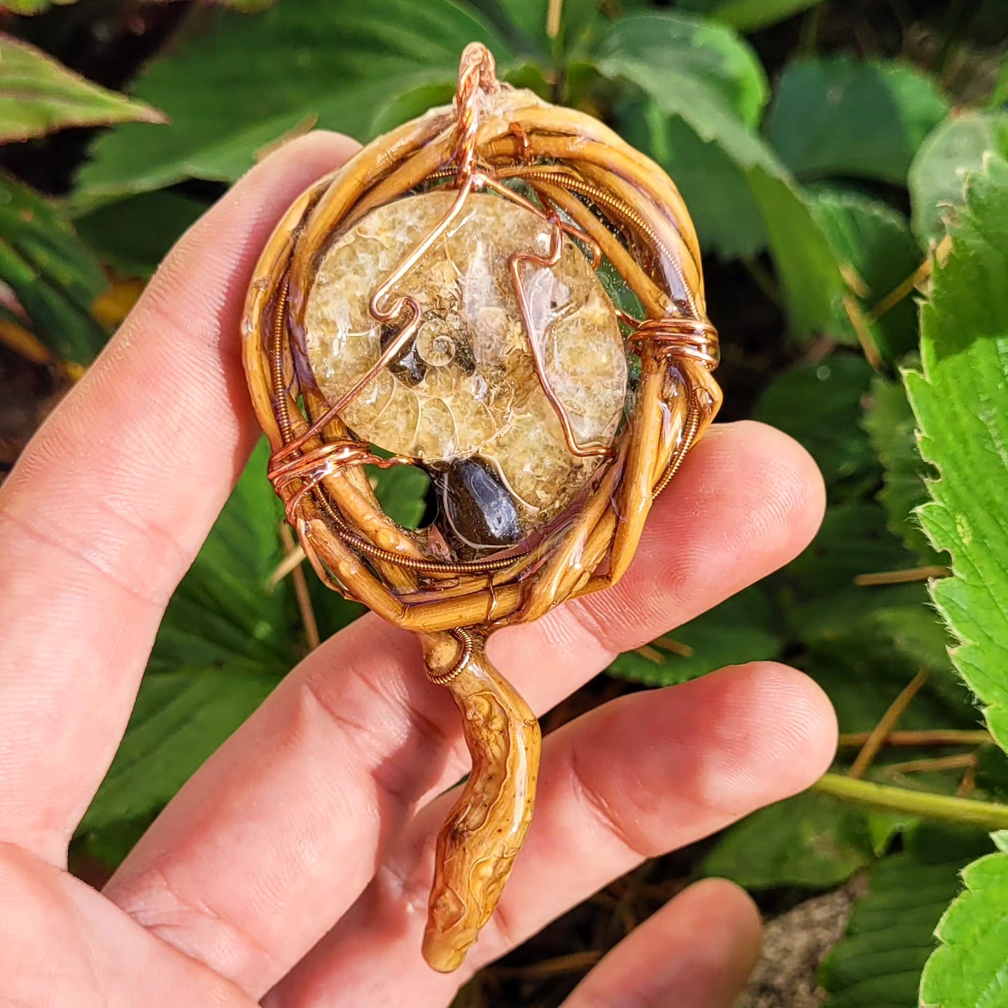 Adjustable cotton string included. A magical one of a kind spiritnest, ammonite nested in Willow, braided copper for the hanger of the pendant.