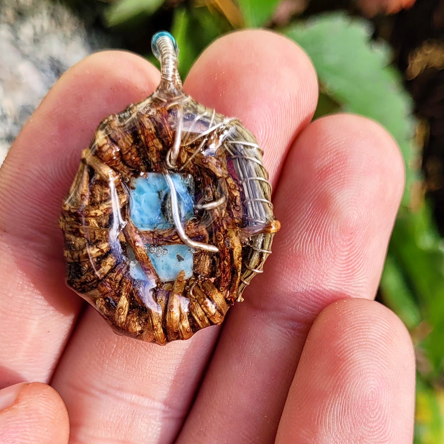 No two Spirit Nests will ever be alike, just like no two people are ever completely alike. Each nest has its own unique qualities from the trees and stones. Trees similar to our thoughts start as a small seed. Sending roots deep into our being and a massive canopy over us, either empowering or crippling us. Stones similar to our emotions, form under different pressures and conditions giving them their own unique beautiful and dangerous qualities. A Spiritnest being worn between the two acts as a sort of Talisman connecting them.
